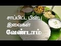 Avoid taking these after food - Tamil Health Tips - YouTube tamil food tips Effects of stop eating non vegetarian food in tamil. Tamil health exercise. Noi ethirpu sakthi foods in tamil